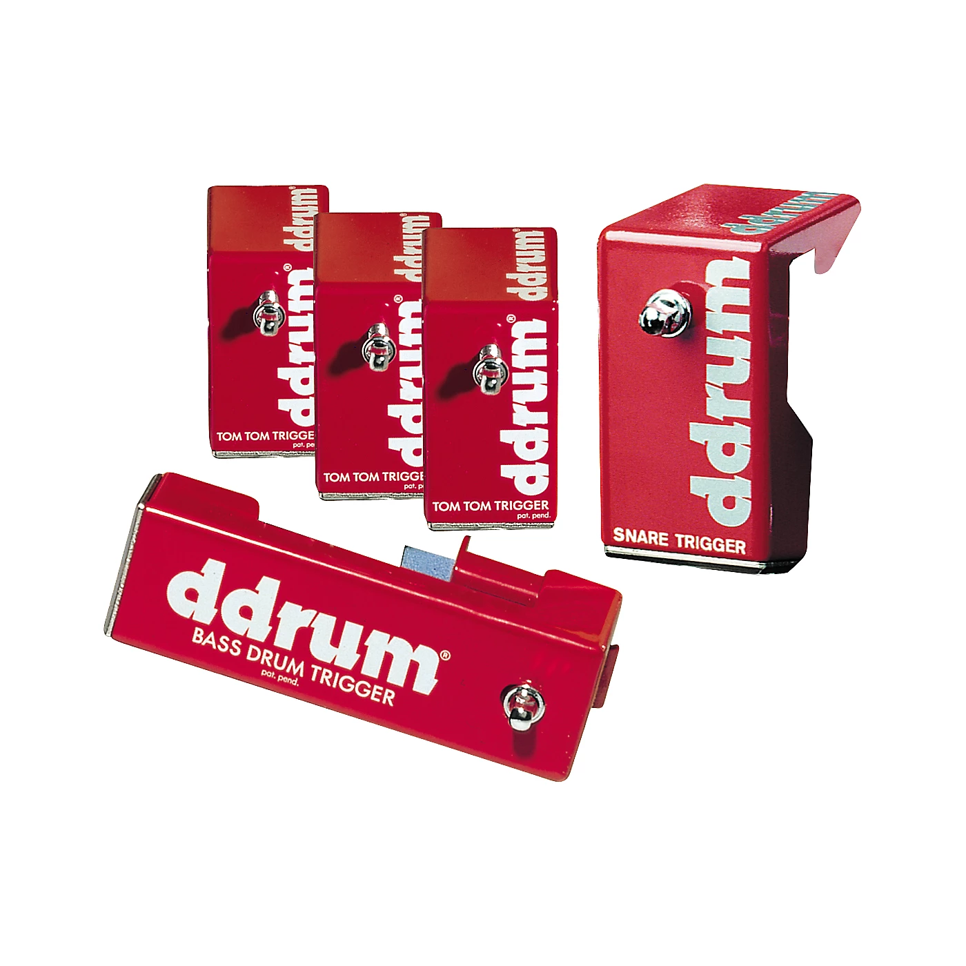 The triggers in the ddrum Trigger Kit feature XLR output for professional connection. Attach to most types of molded hoops, safely secured with a standard tension rod. No adhesive is needed. Pack includes 3 tom triggers, a bass trigger, and a snare trigger.