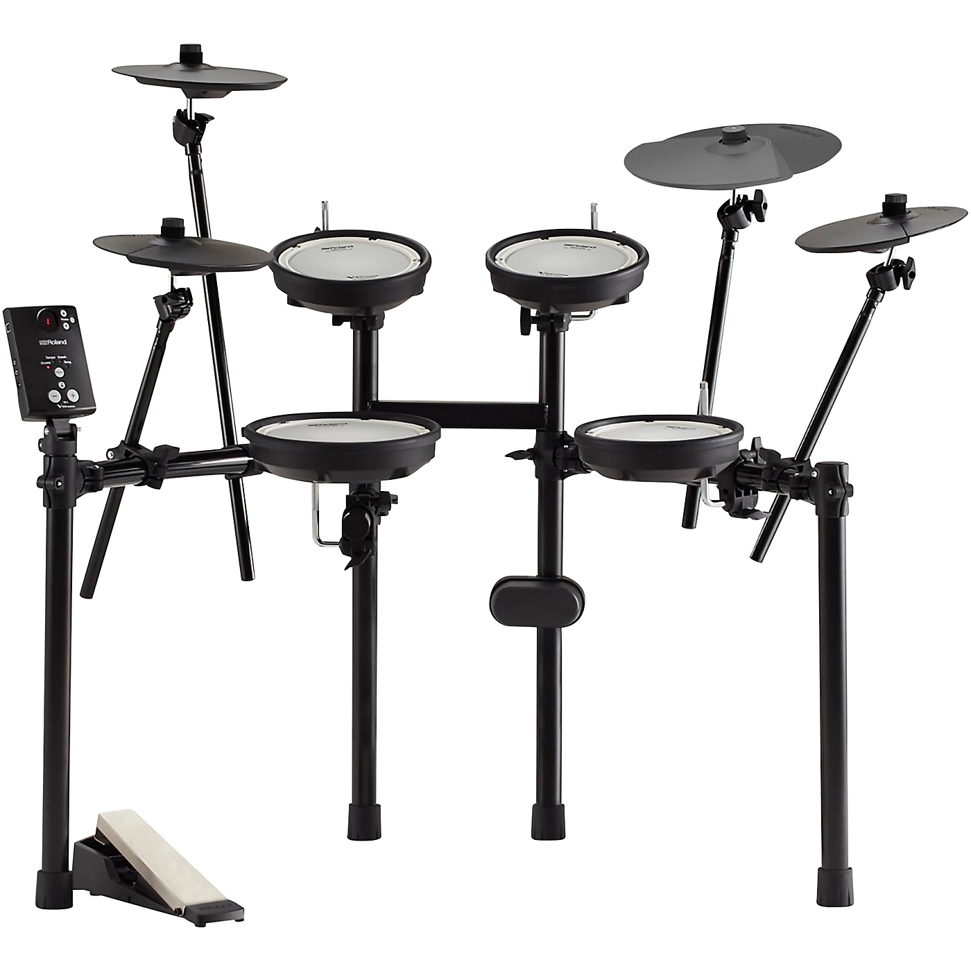 The Roland TD-1DMKX provides a fulfilling drumming experience in a compact kit that’s easy to move around. The simple yet powerful module includes a variety of expressive drum kits, connected to Roland’s double-mesh pads for snare and toms. These pads use two layers of mesh material for realistic “rebound” (where the drum stick bounces back after hitting the drum), just like on an acoustic kit. Although durable, they’re quiet to play too, and great for late-night practice sessions. You can play with headphones, so you won’t disturb family or neighbors, and with onboard coach functions and the ability to connect to Melodics drum training software, you’ll be surprised how quickly you’ll improve. Pick up the sticks, take a deep breath and pull up to the TD-1DMKX. A lifetime of drumming awaits—so what are you waiting for?For Beginners—Start Playing Drums If you’ve haven’t played drums before, you might think it’ll be too difficult or that learning on an electronic kit is complicated. The TD-1DMKX is a hassle-free drum kit that’s easy to set up and intuitive to use. Just connect the power, switch on and connect either your headphones or monitor speakers. You’re ready to start playing an authentic-sounding collection of drums, with a choice of 15 preset kits, for a realistic and engaging drumming experience. And when it’s time to start working on your drum skills, onboard coach functions and Melodics for V-Drums software lets you learn the essentials and quickly start climbing the ladder. Weighing just 15 lb., it’s easy to move around in your home too, so whether you’re playing solo or want to perform for your friends and family, the TD-1DMKX can go wherever you play. For Parents—Help Develop Your Child’s Sense of Rhythm When your child learns a musical instrument, they also learn about life. And along with discipline and determination, the sheer enjoyment they’ll get when playing drums is priceless. Melody, harmony and rhythm are the fundamentals of music, and developing a keen sense of rhythm will help your child learn and appreciate other musical instruments too, in addition to the drums. The TD-1 module’s onboard metronome and 10 coach functions show your child how their timing skills are improving, creating the foundation for a lifetime of musical creativity. The game-like experience of the coaching functions means that although they’re learning, every session is fun and engaging. Melodics for V-Drums, a free application for Windows or Mac computers, provides a series of free drum lessons that help develop a sense of rhythm without it seeming like hard work. The TD-1DMKX’s pads are quieter than other electronic drums, so your child can practice without limitation. From double-mesh heads to a kick drum pad that absorbs the impact of a beater, all V-Drums are built to be noticeably quieter when played (Depending on the room and surface on which the TD-1DMKX is played, additional noise damping from Roland NE-10 Noise Eaters, sold separately, may be required). The TD-1DMKX can continuously support your child as they develop the concentration, patience and physical strength that comes through regular playing.For Students—Become a Better Drummer Whether you want to be a drum hero in a band or you just want to develop solid drumming skills, the TD-1DMKX helps you get there by supporting the techniques learned in your tuition. The TD-1DMKX faithfully responds to the subtle nuances of your playing—with every stick hit and all the dynamics detected and faithfully relayed, thanks to the fast processing and authentic acoustic sounds of the TD-1 module. And as you improve, the TD-1 module can keep up with you, reflecting your superior technique and expression. The double-mesh heads for the snare and toms can be tension-adjusted and offer stronger “rebound” compared with drums that have single-mesh heads, giving a natural feel that’s as close as possible to the feel of playing acoustic drum heads. Kick pedal feel and rebound is also important for your drumming—so the TD-1DMKX is compatible with your choice of kick pedal, including double-kick pedals. The soft rubber pad absorbs the energy from the beater too, for a natural, faithful rebound and quieter performance. Rediscover Your Love of Playing Drums If you used to play drums, you’ll remember how good it felt—whether the sheer physicality and expression of TD-1DMKX can help bring drums back into your life, whether you’re brushing up your skills or picking up where you left off. From onboard songs across a variety of genres, to connecting your smartphone to the module and playing along to your favorite tracks, the TD-1DMKX lets you play along with music while you smooth out those rough edges. And if those edges are a little too rough, the quiet performance of the TD-1DMKX, and the option to use headphones, lets you immerse yourself in the music without disturbing your family. The durable TD-1DMKX is infused with legendary V-Drums reliability too, so you can play with confidence for years to come. And as your skills and ambitions grow, you can expand the TD-1DMKX by adding an extra crash cymbal or even upgrading the sound module. Give yourself a break—start playing drums again with the TD-1DMKX.