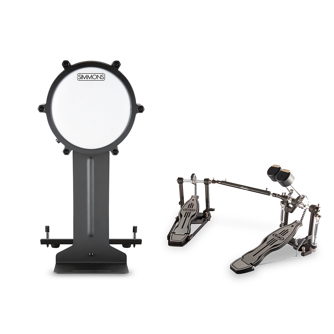 An exciting upgrade for electronic drummers looking to kick their double bass chops into high gear, this power combo consists of the Simmons KP2 Mesh Kick Tower and the Mapex 500 double bass drum pedal. This allows Simmons SD350, SD550—as well as many other electronic drum kit players–to convert their single kick-only solution to a full double bass pedal setup. No need to have a second kick trigger or pad. Attach the Mapex 500 pedal to the KP2, plug in the 1/4’’ cable from your existing electronic drum kit wire harness into the KP2 and you are ready to play. Up your double bass game with the superior sound control of the Simmons KP2 Mesh Kick Tower and the smooth playing of the Mapex 500 double bass drum pedal.Simmons KP2 Mesh Kick Tower. 6″Mesh kick tower ideal for any drum kit, including Simmons SD350, SD550 and many more.The Simmons KP2 Mesh Kick Tower is the ideal addition to any electronic drum kit. It features a solid steel frame that provides years of rugged durability, plus angled screw-down spikes with hook ‘n’ loop design keep it fixed to your drum rug. It accommodates most kick beater pedals for further customizable playing options. Comes completely assembled and ready to rock.Mapex 500 Double Bass Drum PedalThis Mapex 500 Double Bass Drum Pedal has single-chain drives with fully adjustable spring tensions. It features duo-tone felt/ABS plastic beaters, footboards with compact stabilizing radius rods, an independent universal linkage adjustment and retractable floor spikes. This kick drum pedal is made of solid steel components and was engineered to be reliable, durable and most important, playable. Adjustments are made quickly and easily, keeping you going during gigs night after night.
